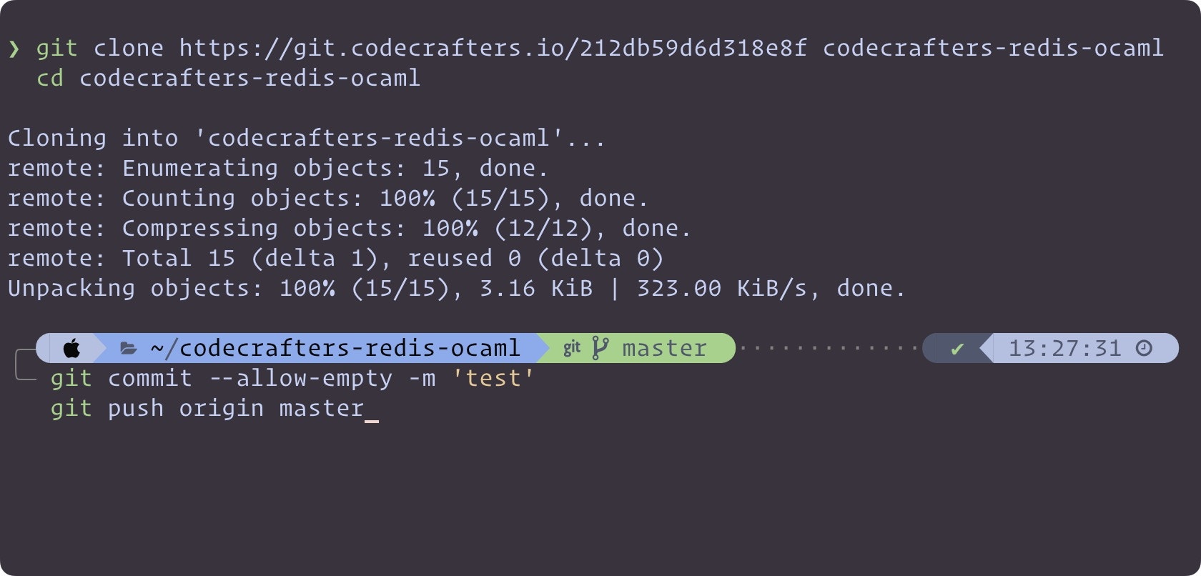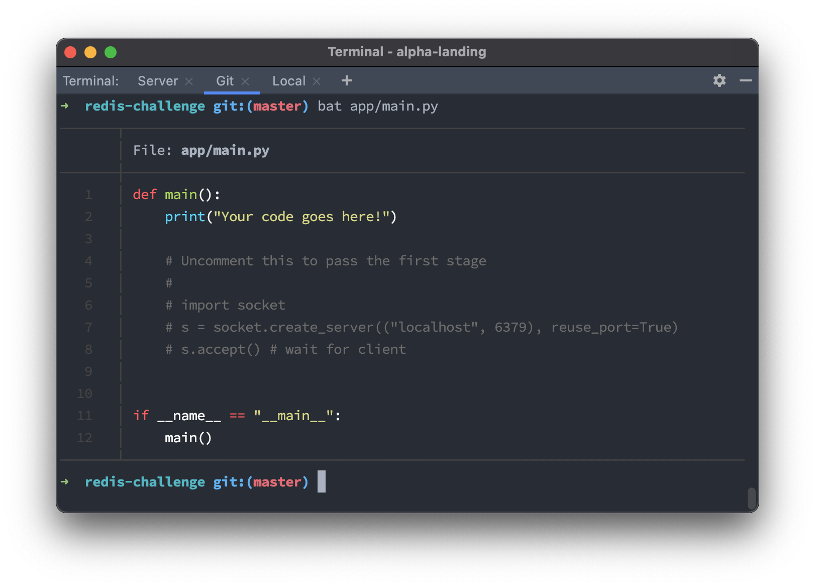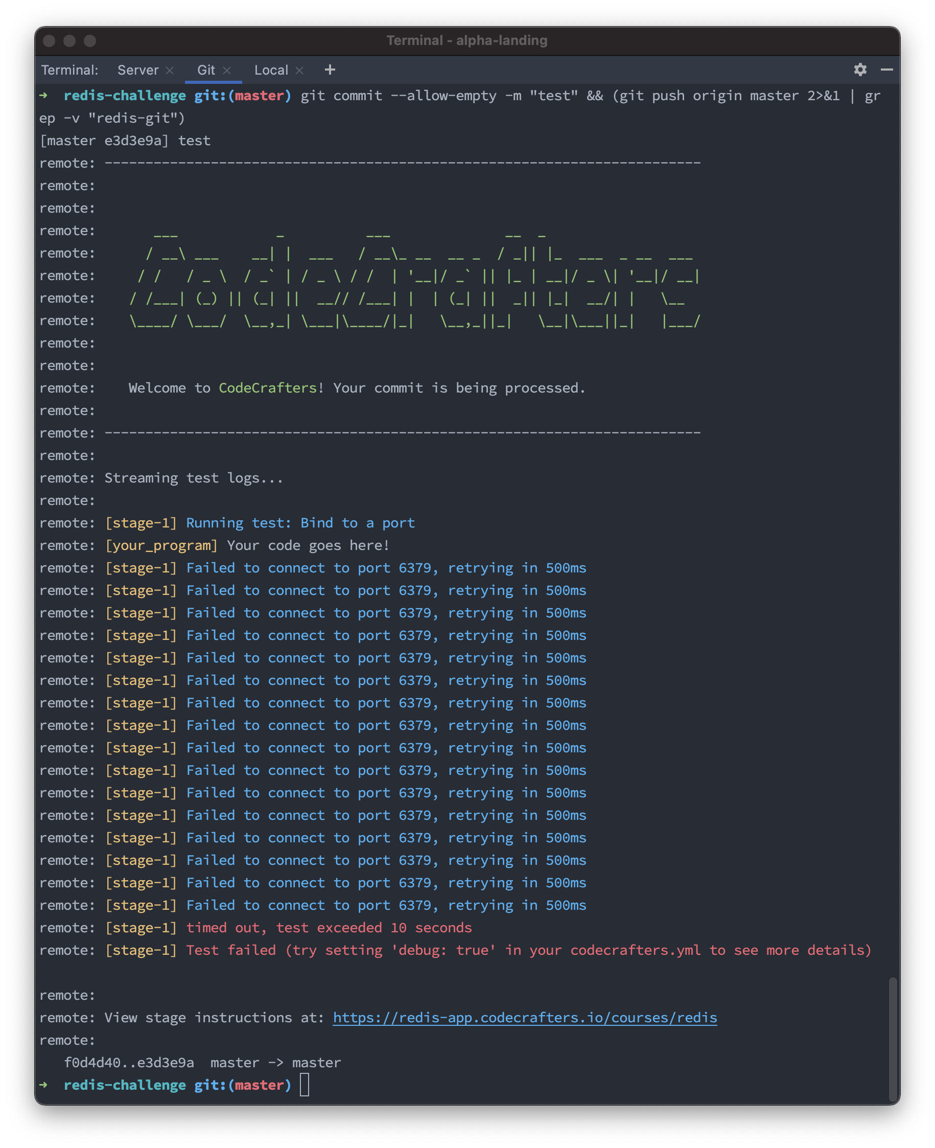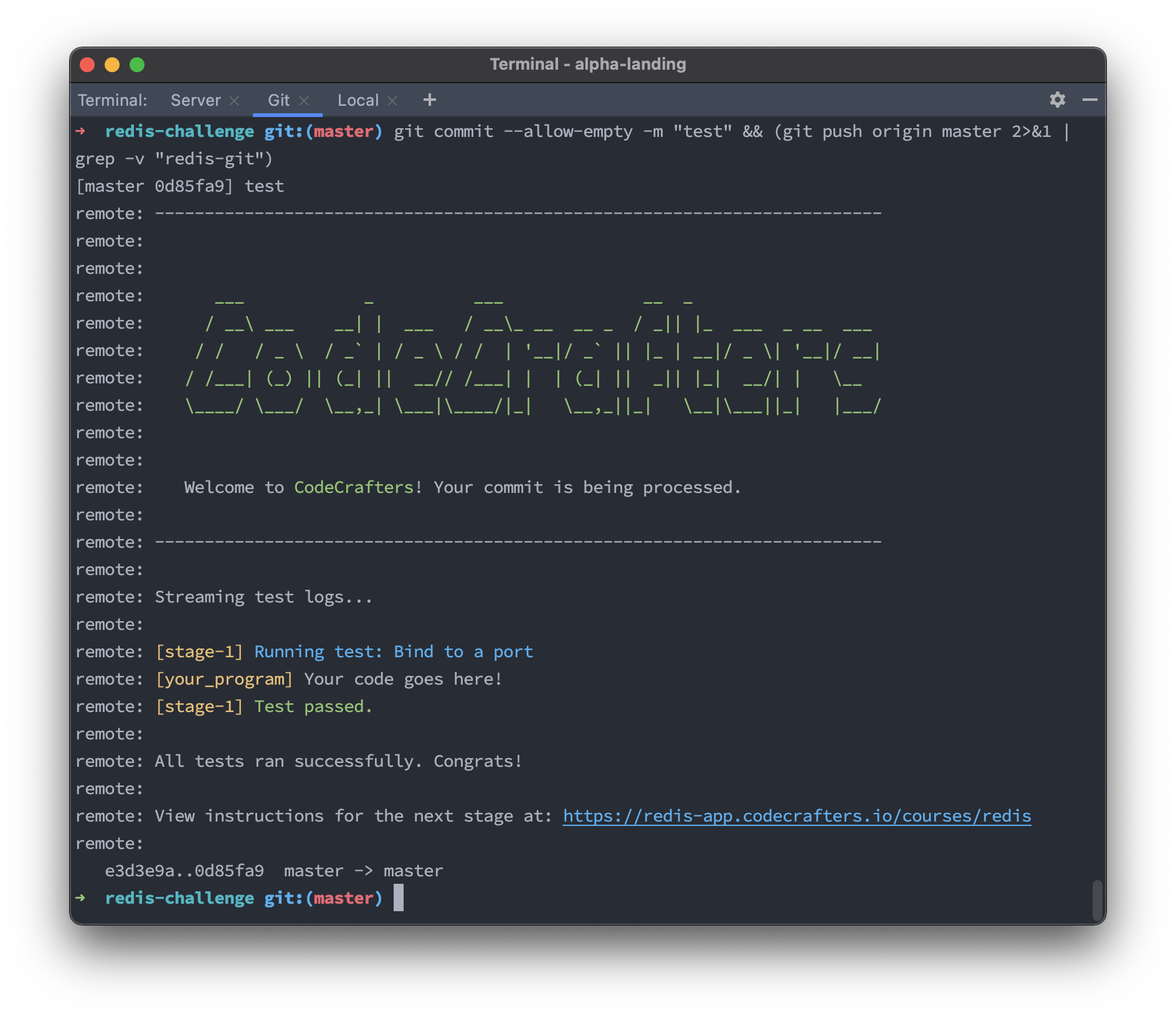 First off, we’ll create a git repository for you. Like this one. You’ll use this repository to submit code to CodeCrafters to run tests. You can choose what language to use at this point. You can freely switch between languages whenever you want.